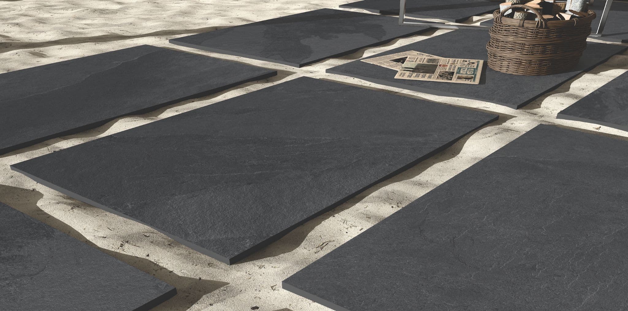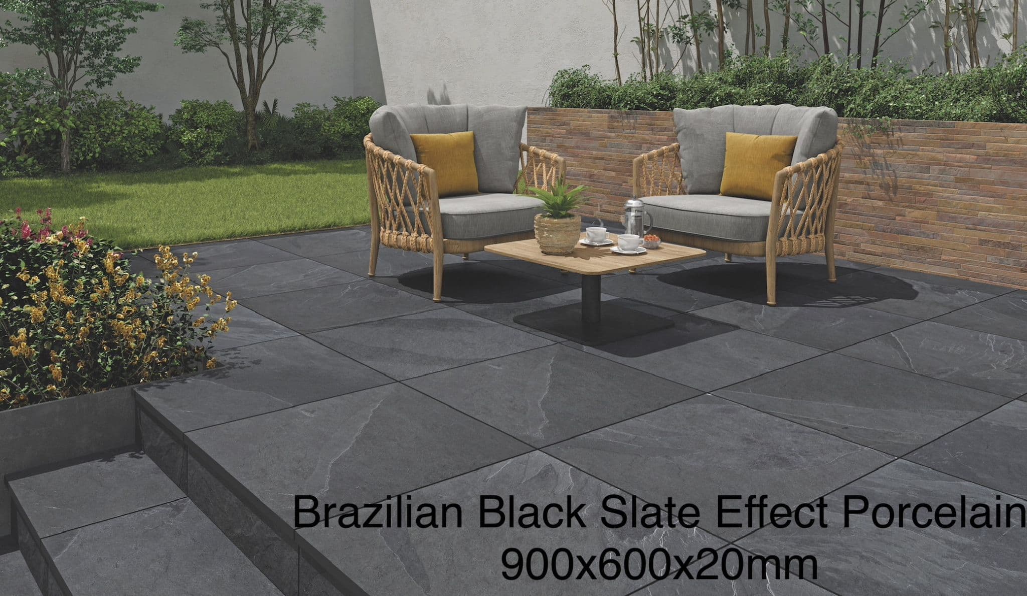 Brazilian Black Slate Outdoor Porcelain Slabs 900x600x20mm (Price From: £20.95/m2)